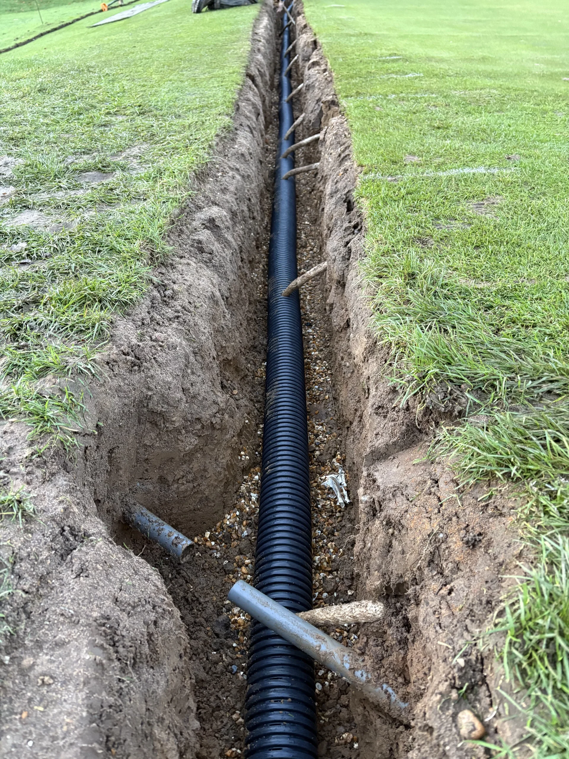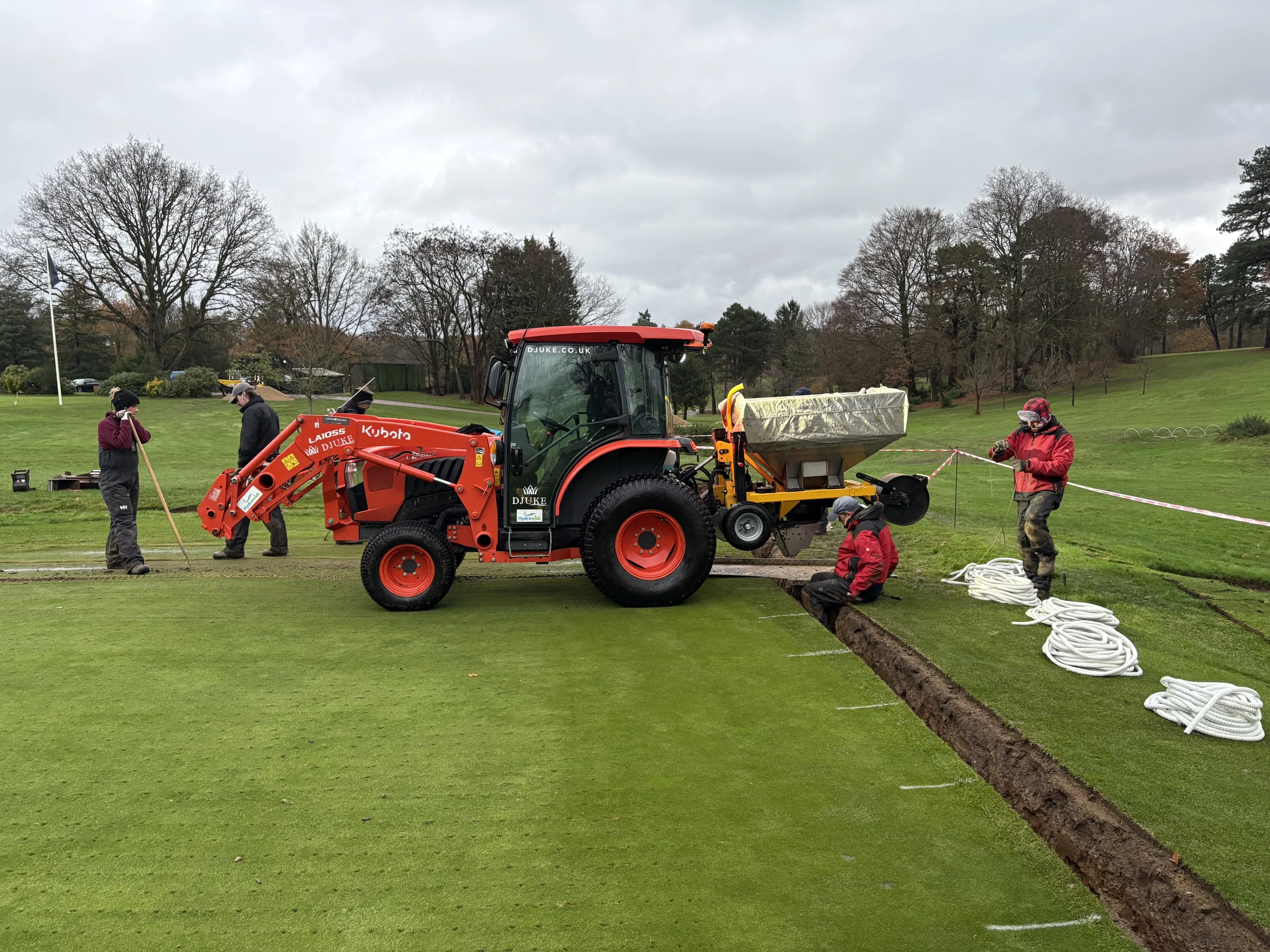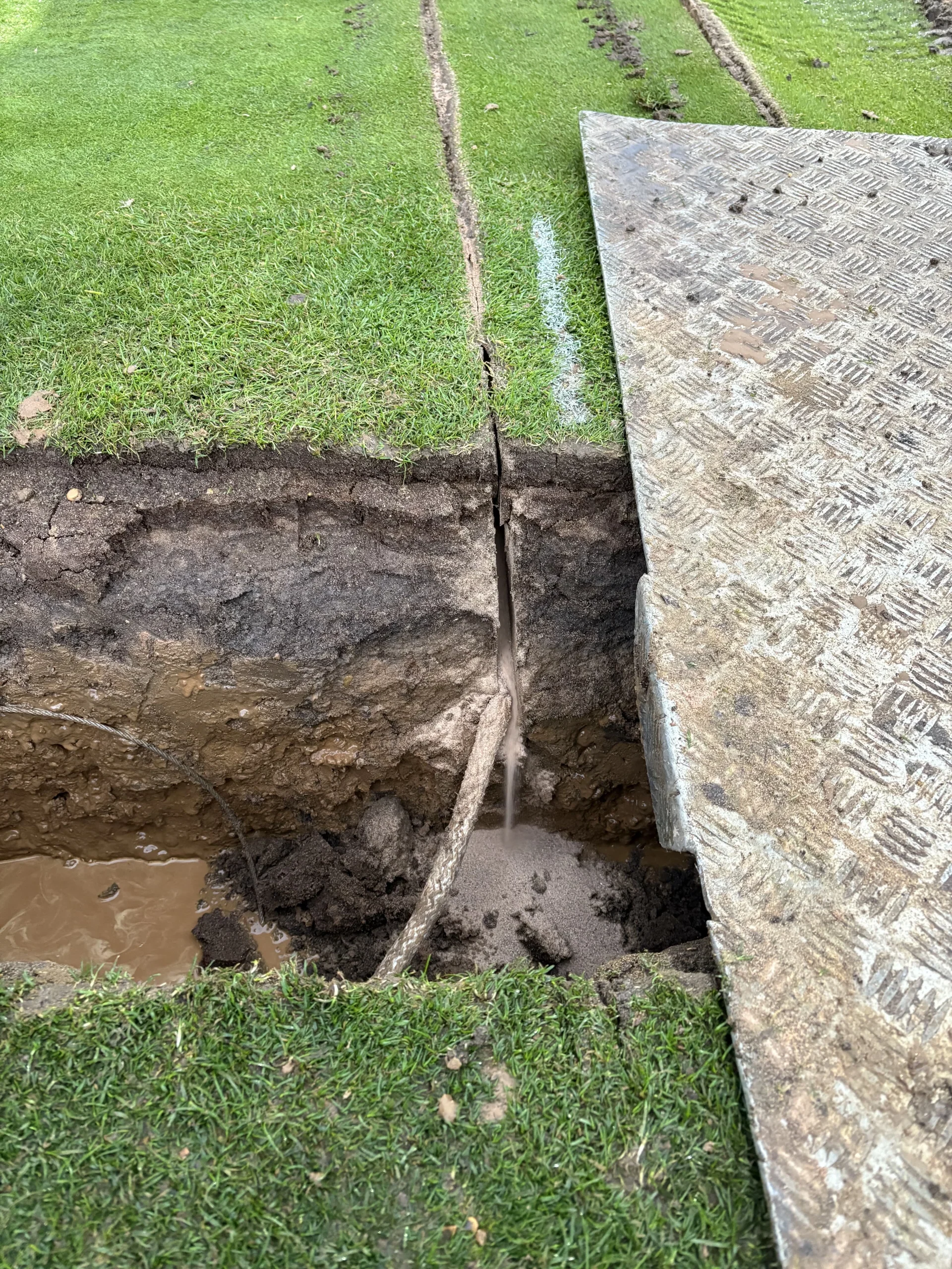 För att garantera våra framtida kunder ett gott resultat från dag ett fick vi vara med och installera Hydrowick på Porters Park GC, vilket var extremt nyttigt och framförallt förvånande över Hyrdowicks effektivitet. Under måndagen regnade det hela eftermiddagen och natten till tisdag, när vi påbörjade Hyrdowickinstallationen på tisdagen fick vi avbryta efter halva processen på första greenen pga regnet. Vi fick endast ner repen i marken och kunde inte återställa ytorna helt, eller fortsätta till dem andra greenerna vi skulle göra för den delen heller.